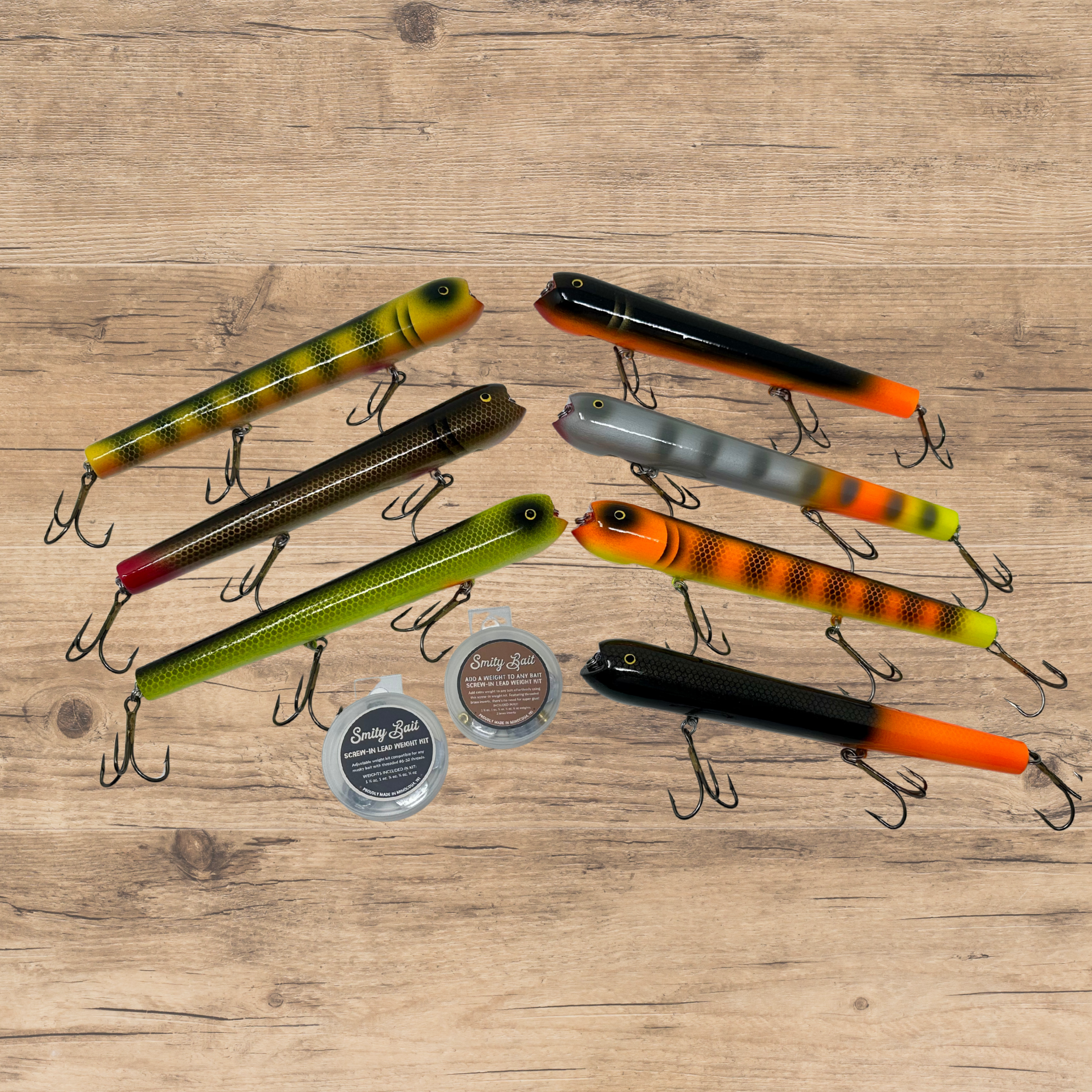 Bigger is better! We've taken the beloved Smity classic jerk bait—one that's been around since the very beginning—and made it even better. This new, larger 10" jerk bait is designed for the adjustable lead weight kits (sold separately). It can be used with or without the screw-in lead weights.