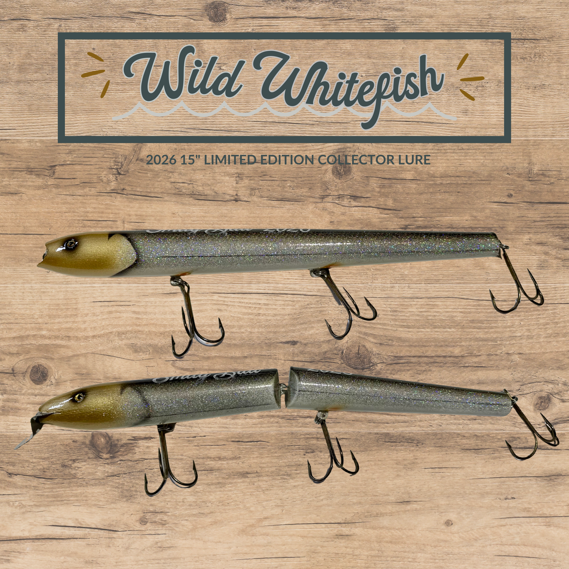 One of a kind bait, limited to only 100 per year! These baits can be used on the water like a traditional Smity Bait or add them to your Smity Bait Collection. The 2026 Limited Edition lures are numbered and signed by, Hall of Fame Guide, Russ "Smity" Smith and Jake Smith.
